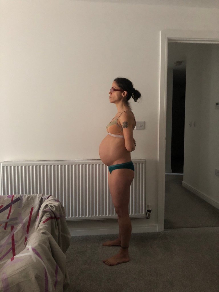 I couldn’t take any pictures of my bump 24 hours after giving birth: I was still in a post-operation mode lying on the bed, and in a lot of excruciating pain.
