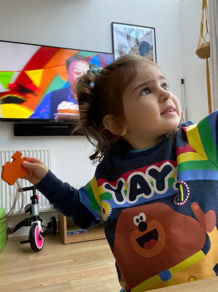My mother baked a yummy cake for the birthday party, and we opted for a Hey Duggee birthday celebration once again. Lavinia didn’t look like she was tired of the theme, or eating cake.