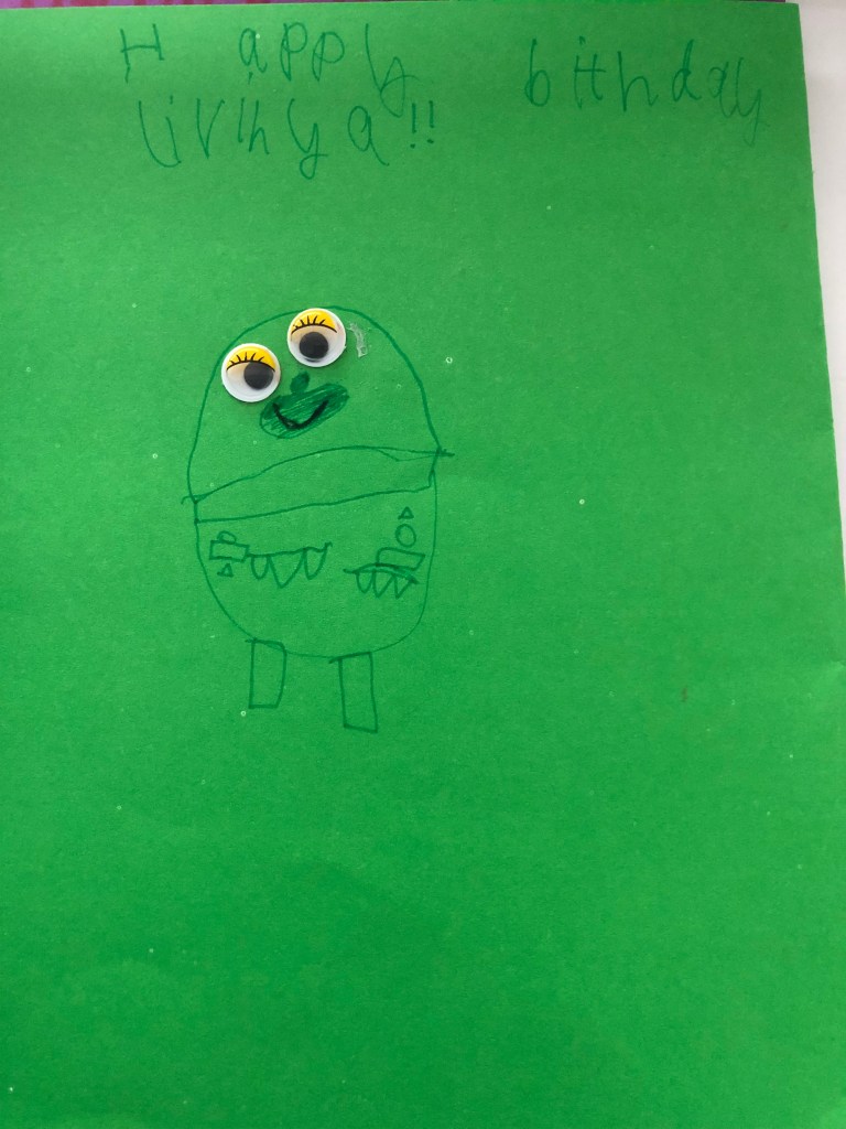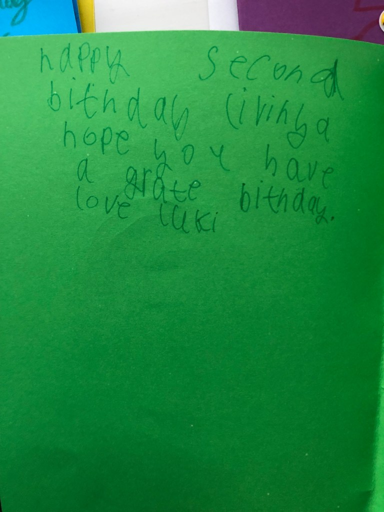 I almost shed a tear when she brought home the birthday cards the oldest children crafted for her. 😭