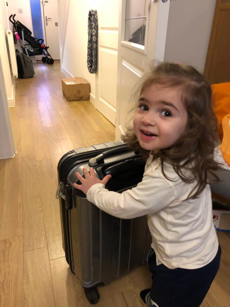We put together the Christmas tree and she looked very excited to carry her own luggage around!