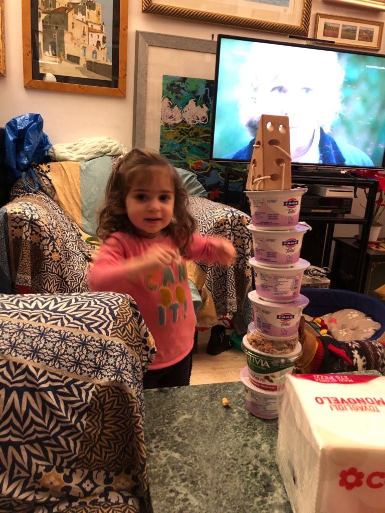 She did extremely well, going beyond our expectations: she got accustomed to the places very quickly, she ate amazingly, tantrums were limited to a couple of episodes, got along with everyone, and didn’t poke the dog too much. She also showed unexpected gratitude when unwrapping her Christmas presents(which were A TON). I didn’t realise toddlers at such young age were already capable of expressing this genuine feeling of gratitude.