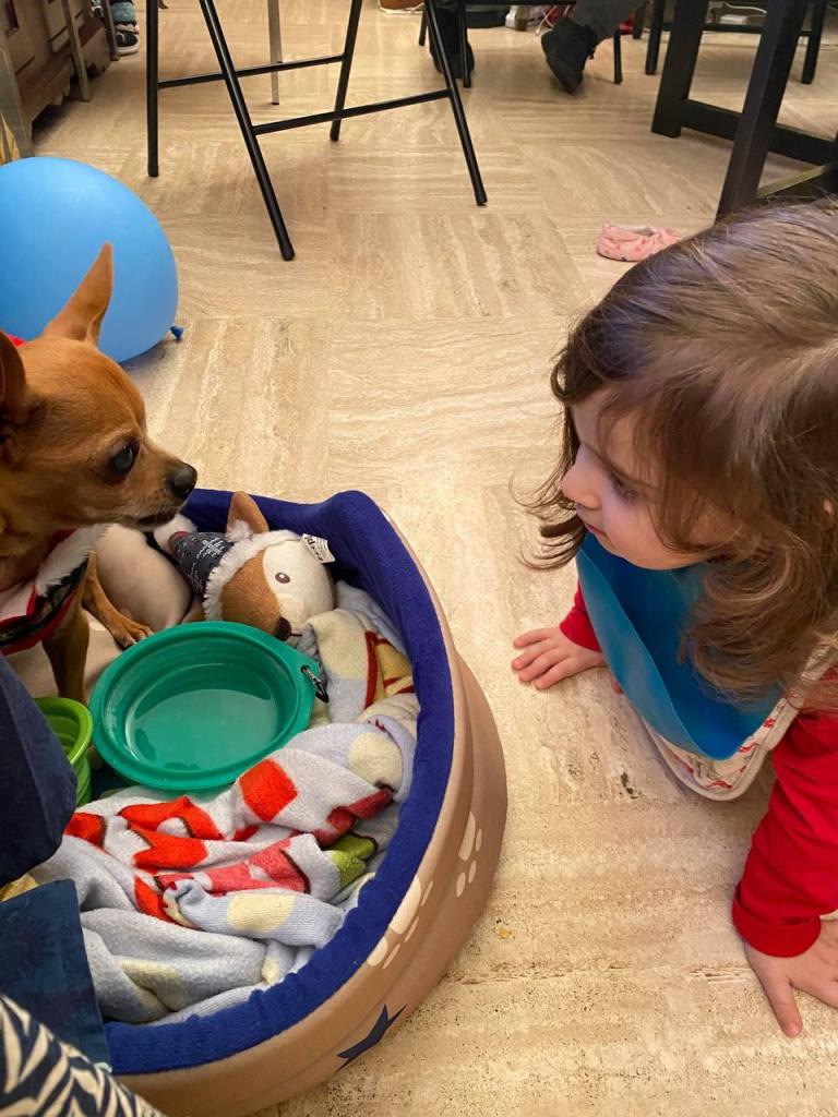 I don’t think Lavinia has ever gotten very close to a pet, let alone sharing a house with one for so many days. She surprised me by being extremely gentle and considerate towards our family little dog (who is now almost 14 years old), respecting his space and stroking him when she was allowed to.